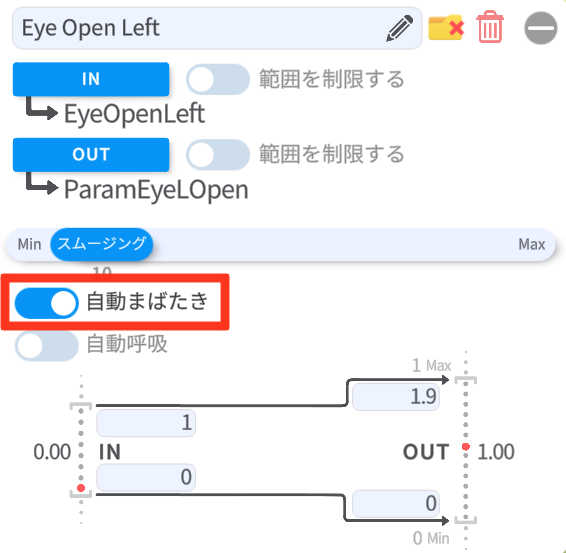 カメラなしで活動する場合「EyeOpenRight」と「EyeOpenLeft」の自動瞬きも設定しておくとよいと思います。